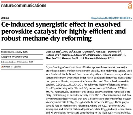 我院孙志强教授团队再次在《自然-通讯》发表热化学制氢研究新...