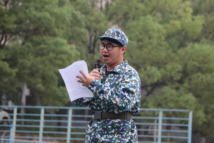 关淼老师为初赛致开场词。他围绕“爱我国防”主题,强调国防教育对青年成长的重要意义,并总结了军训开展以来新生的成长变化,肯定了大家在体能训练、纪律遵守、团队协作等方面的成长与进步,鼓励参赛选手立足军训经历,畅抒国防情怀,展现2025级新生的责任与担当。