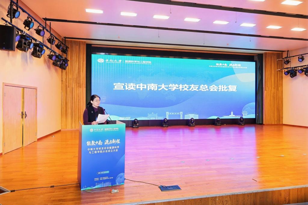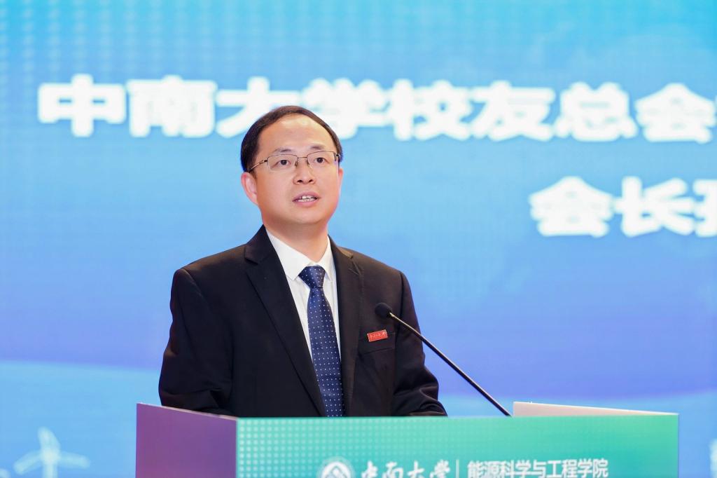 校党委副书记、纪委书记彭立威代表学校对分会的成立致以热烈祝贺,并重点介绍了学校近年来在科学研究、学科建设、人才培养等方面取得的标志性成果以及长远发展规划。他对分会提出殷切期望:要坚守初心本真,筑牢校友精神家园;要聚焦协同赋能,搭建校地校企合作桥梁;要凝聚奋进合力,厚植校友爱校荣校情怀,在建设世界一流大学的宏伟征程中,为中国式现代化建设、国家能源安全与“双碳”目标实现贡献更多中南力量。